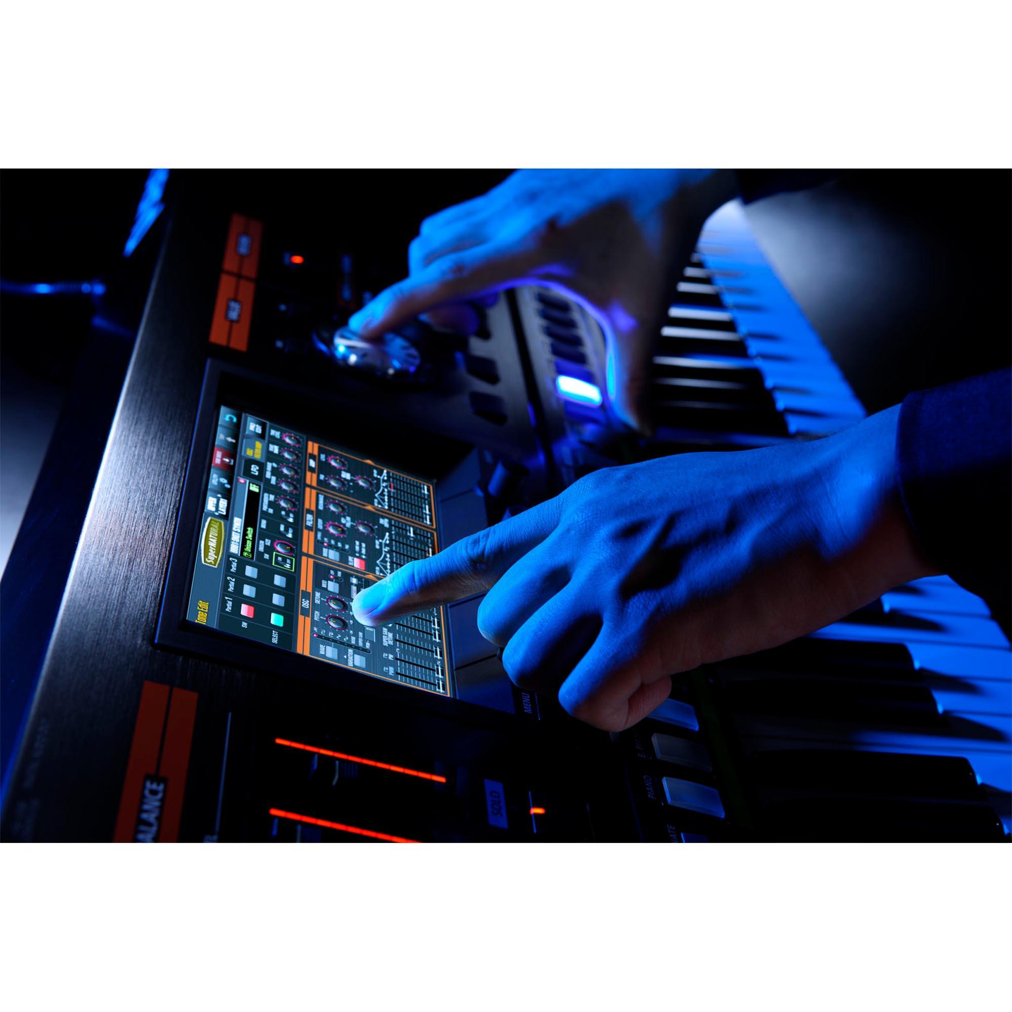 - 76 teclas semi pesadas e 256 vozes de polifonia (varia de acordo com o gerador de som usado);