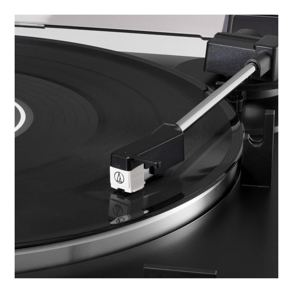 - Experimente o áudio de alta fidelidade do vinil | - Operação totalmente automatizada do toca-discos com acionamento por correia com duas velocidades: 33-1 / 3, 45 RPM | - Antirressonância, prato de alumínio fundido | - Base de braço e cabeceira redesenhada para melhor rastreamento e redução de ressonância | - Cartucho fonográfico Integral Dual Magnet com ponta de diamante substituível (ATN3600L) | - O adaptador AC lida com a conversão AC / DC fora do chassi, reduzindo o ruído na corrente do sinal | - Pré-amplificador phono selecionável incorporado para saída em nível de linha ou fono | - Inclui: cabo de saída RCA destacável (macho de 3,5 mm para macho RCA duplo), adaptador de 45 RPM e tampa de proteção articulada removível | - Tipo: Toca-discos acionado por correia, totalmente automático | - Motor: DC, servo-controlado | - Velocidades: 33 a 1/3 RPM, 45 RPM | - Disco de vinil: Alumínio | - Wow e Flutter: <0,25% (WTD) a 3 kHz (JIS) | - Relação sinal-ruído: >50 dB (DIN-B) | - Nível de saída: Pré-amplificador 'PHONO': 2,5 mV nominal a 1 kHz, 5 cm/s; Pré-amplificador 'LINE': 150 mV nominal a 1 kHz, 5 cm/s | - Ganho de pré-amp Phono: 36 dB nominal, equalizado RIAA | - Requisitos da fonte de alimentação de energia: 100 a 240 V, 50/60 Hz, 0,6 A máx. | - Consumo de energia: 1,0 W | - Acessório incluídos: Capa protetora contra poeira, feltro, prato (com correia de transmissão), adaptador de 45 RPM, cabo de áudio RCA (aprox. 1,2m) | - adaptador AC (aprox. 1,5 m) | - Adaptador AC: 12 V, 2 A | - Cartucho de reposição: ATN3600L
