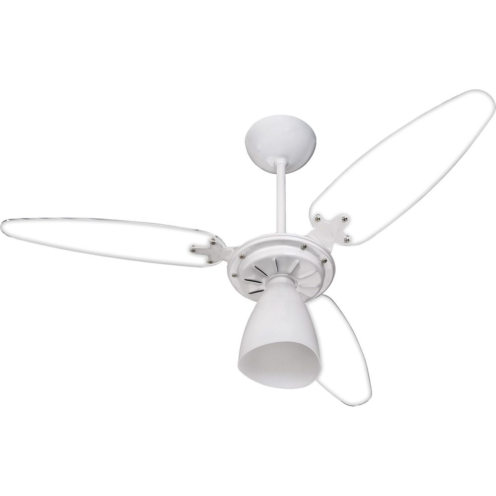 Seu motor e haste são feitos de aço tratado, com pintura eletrostática, o que garante proteção adicional ao aparelho, aumentando sua resistência e vida útil. O lustre do ventilador possui um elegante acabamento fosco em formato de tulipa, adicionando um toque de estilo ao ambiente.